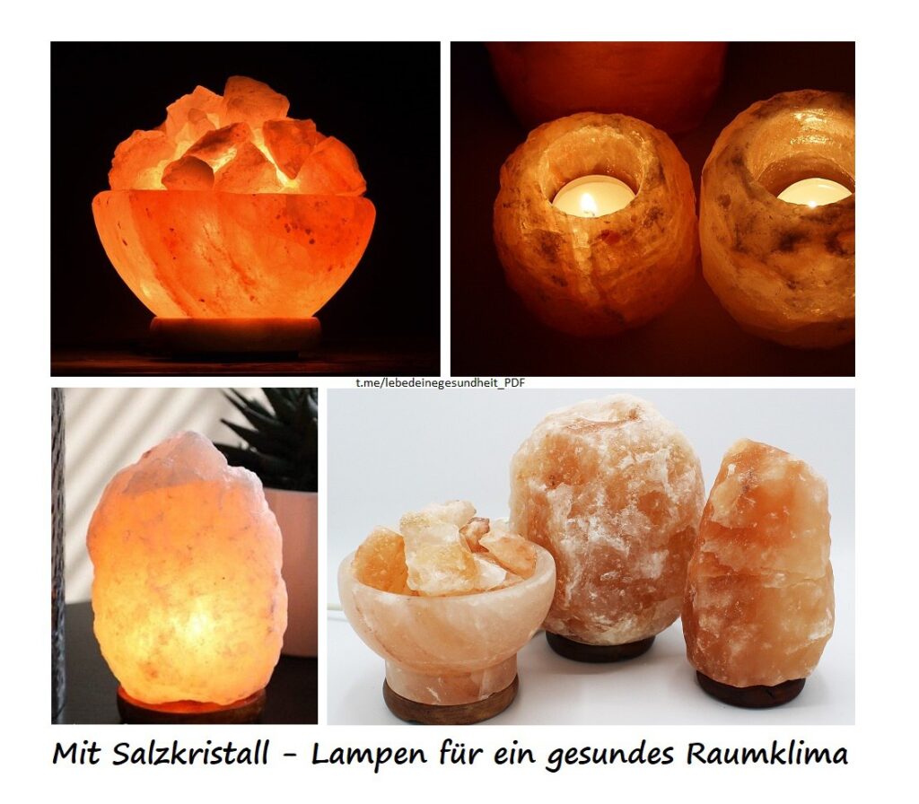 Salzlampen haben eine ionisierende Wirkung, und beeinflussen das Raumklima positiv bzw. die negativen Ionen erhöhen sich.